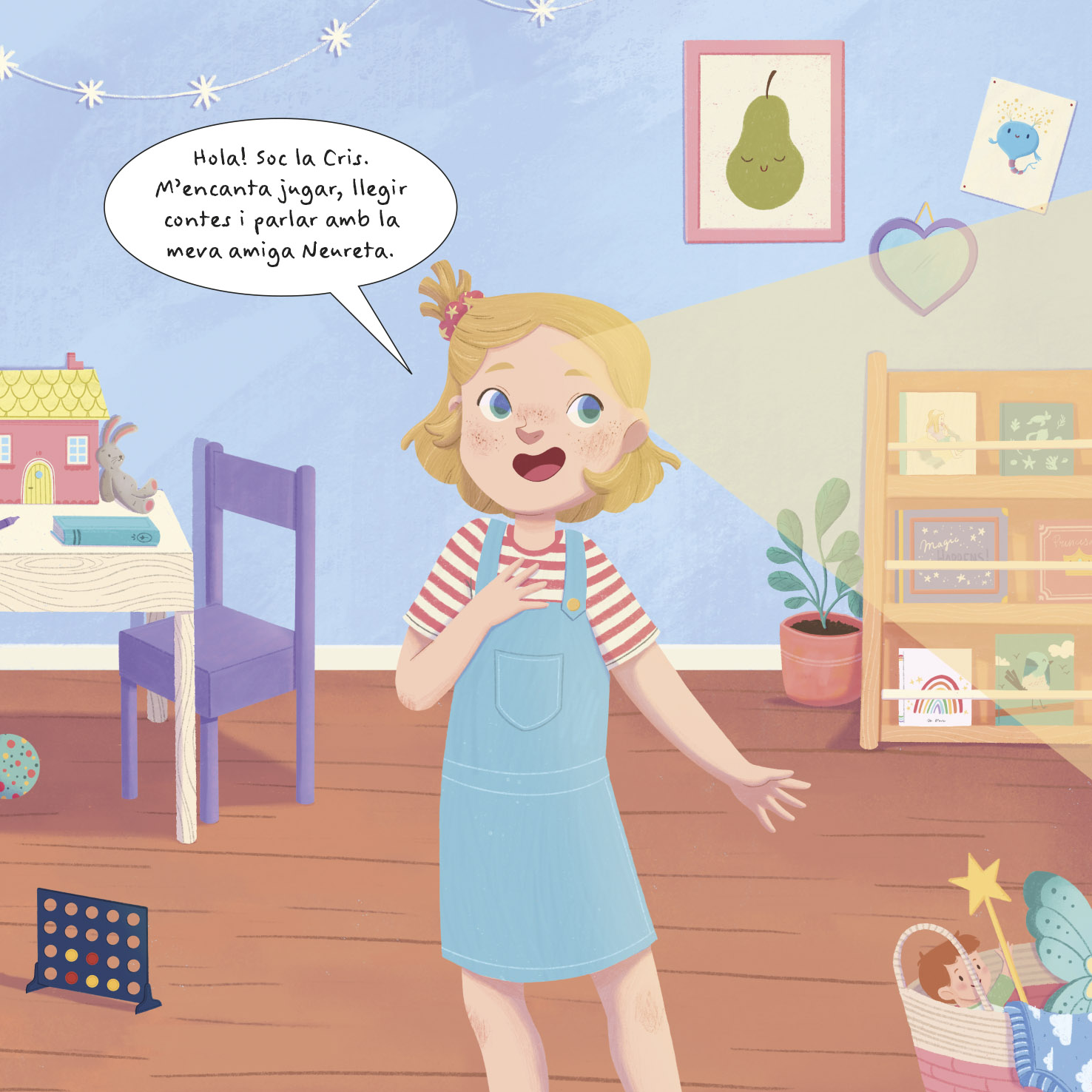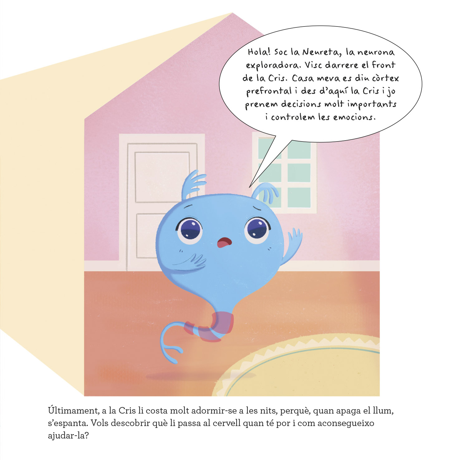 Hola! Soc la Neureta, la neurona exploradora. Visc al cervell de la Cris i m'encarrego d'ajudar-la a entendre els seus pensaments i emocions.