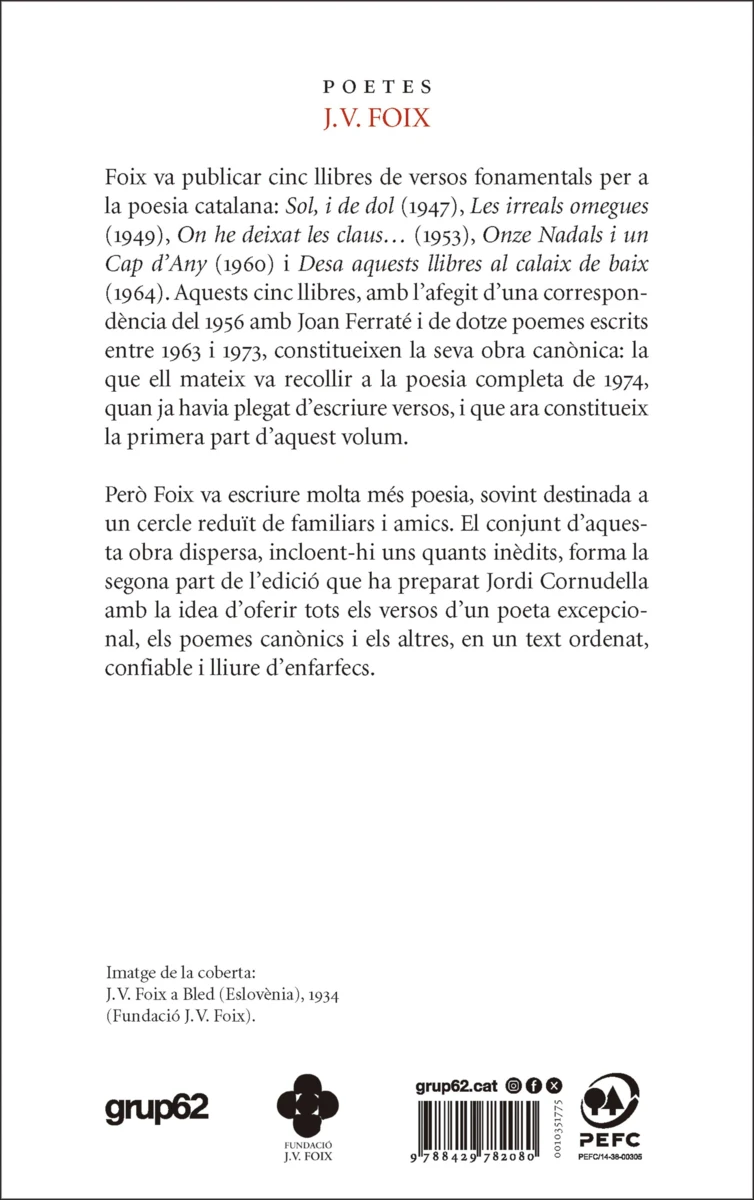 A l’Obra poètica en vers s’hi recull, és clar, tota l’obra canònica de Foix: els cinc llibres que va publicar entre 1947 i 1964, més un opuscle del 1957 —un diàleg poètic amb Joan Ferraté— i els poemes dispersos que va incloure el 1974 en el volum que recollia la seva poesia en vers. Però...