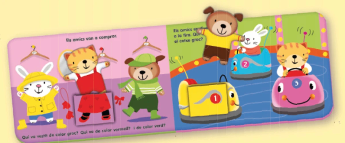 L'infant s'ho passarà d'allò més bé acompanyant el conill, el gat i el gos en un dia d'excursió. Pel camí, haurà de triar l'animal adequat i posar-lo dins la butxaca corresponent mentre aprèn a identificar colors i a relacionar conceptes bàsics i espacials. Les divertides il·lustracions i la interactivitat de la història faran que els...